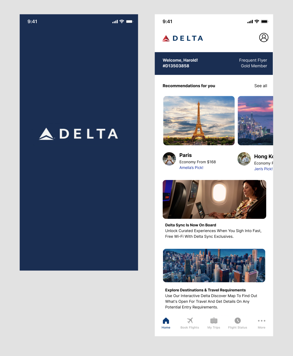 Notifications & Updates: This new section is designed to improve communication based on your research. The existing Delta platform has notifications but integrating them into a dedicated, easy-to-access section can make users more aware of vital flight updates.